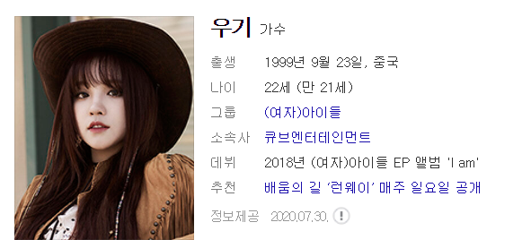 나이는 2020년 현재 만 21세이고 2018년 (여자)아이들로 EP앨번 I am으로 데뷔 하였는데요.