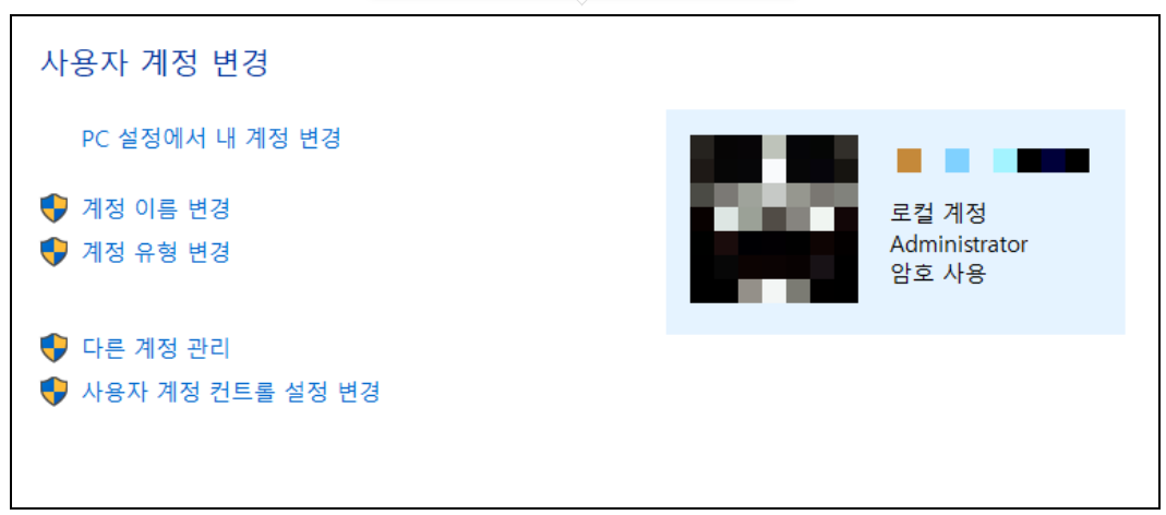 또한 계정 이름 변경도 설정이 가능하고, 계정 유형도 변경할 수 있는데, 표준 혹은 관리자 둘 중하나를 선택해줄 수 있습니다. 관리자 옵션으로 변경할 경우에는 관리지가된 사용자는 PC를 완전히 제어가 가능하게 됩니다.
